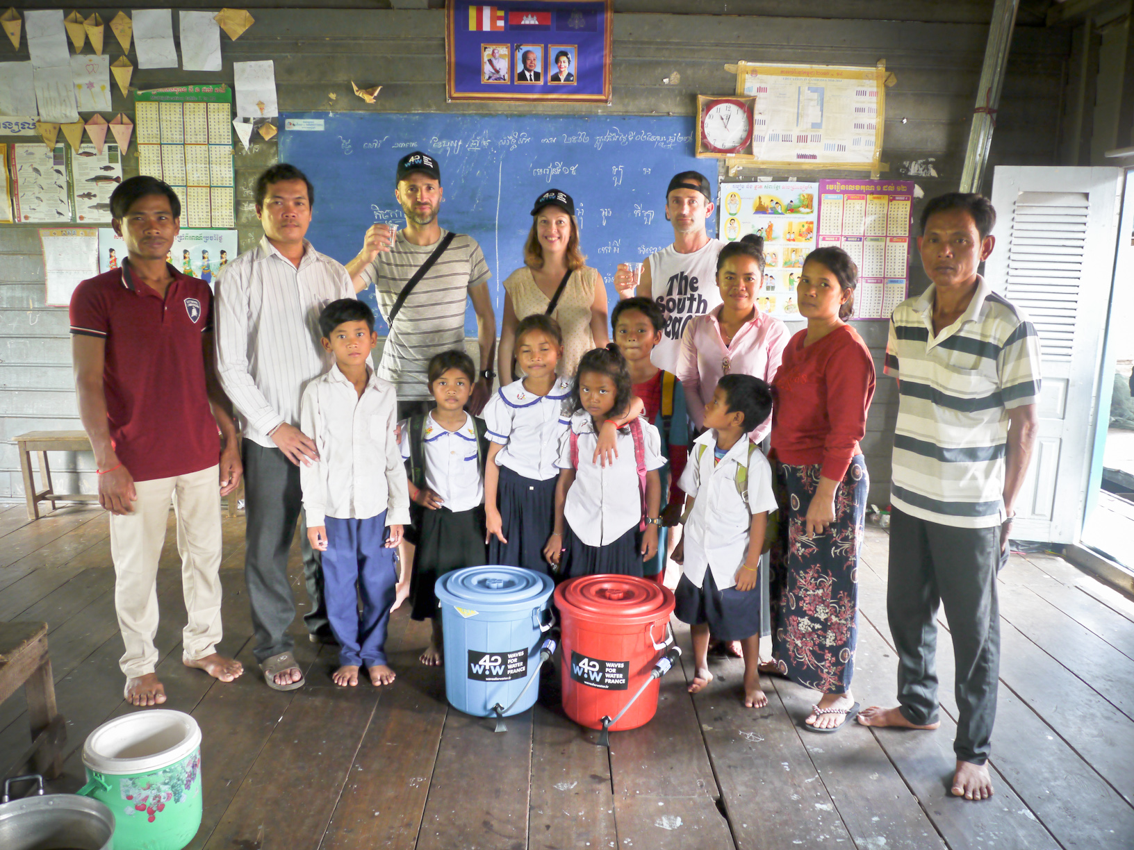 Pour notre premier projet, notre association est intervenue au Cambodge, dans le village de Peak Kantiel. Avec l’aide d’un partenaire local, l’équipe de WAVES FOR WATER FRANCE a installé des filtres à eau chez près de 1000 personnes vivant dans des maisons sommaires qui flottent sur le lac Tonle Sap.